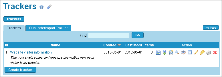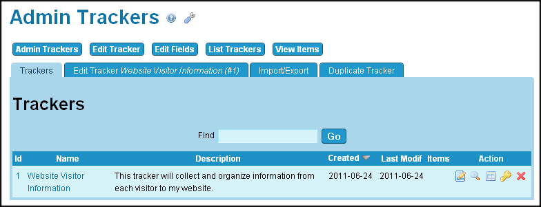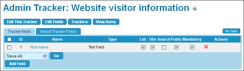 Now that you have an "empty" tracker, you need to create fields for the tracker. These fields represent the form fields that visitors will complete.