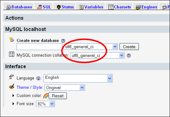 {NOTE()}In some hosted environments, you may not be able to specify the collation. In that case, contact your webhost for details on selecting the correct collation type.{NOTE}
