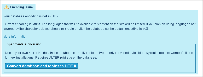 If Tiki detects that your database does not use the correct encoding, you can attempt to convert it to use UTF-8 encoding.
