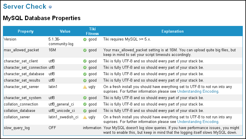 https://doc.tiki.org/Server+Check for additional information.{TIP}